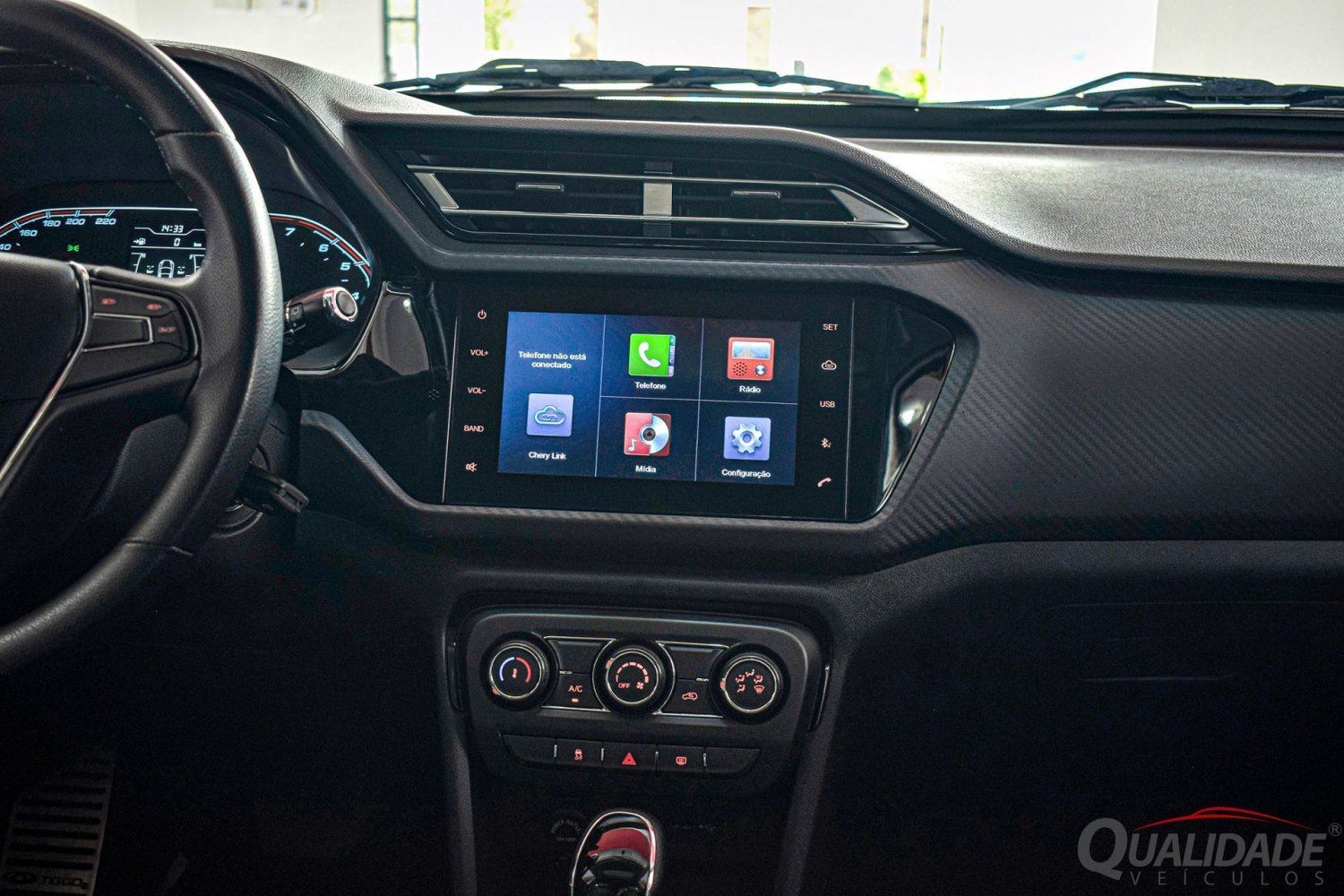 No pacote de opcionais estão presentes: ar condicionado, direção hidráulica, trio elétrico, central multimídia, Bluetooth®, USB, Android Auto, Apple CarPlay, câmera de ré, volante multifuncional, piloto automático, computador de bordo, monitoramento de pressão dos pneus, sensores de estacionamento, bancos em couro, controles de estabilidade e tração, assistente de partida em rampas, teto solar, rodas de liga leve, luzes de rodagem diurna, Airbags e ABS.
