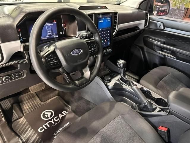 No interior, a Ranger XLS oferece conforto e tecnologia de sobra. A cabine espaçosa conta com bancos em tecido premium, ar-condicionado digital dual zone, painel digital de 8”, central multimídia SYNC 4 de 10” com Android Auto e Apple CarPlay sem fio, câmera de ré, volante multifuncional, chave presencial com partida por botão e porta-objetos inteligentes, garantindo praticidade e comodidade para o dia a dia.