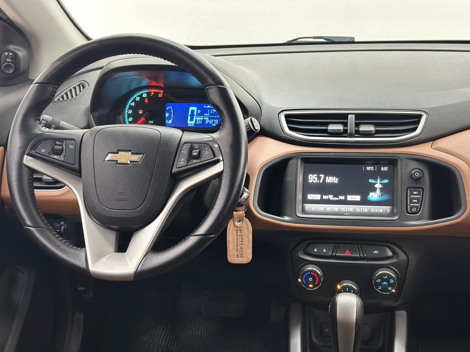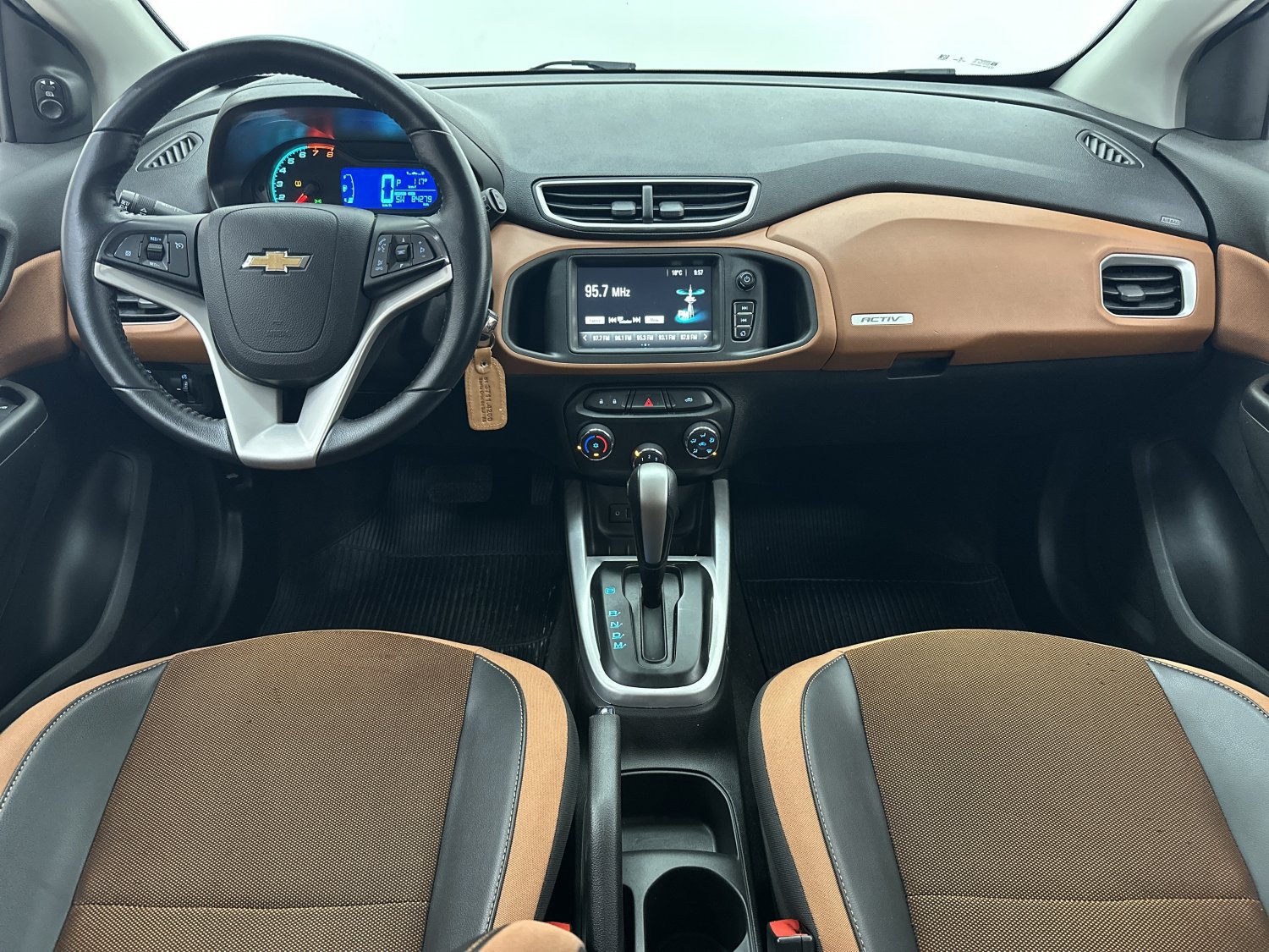 O Onix Hatch Activ 2017 é uma versão com apelo aventureiro do compacto mais vendido da Chevrolet. Com 84.300km rodados originais, nosso Onix se destaca visualmente por uma série de elementos exclusivos que remetem ao estilo off-road urbano, como os para-choques redesenhados com molduras pretas, as molduras nas caixas de roda, a suspensão ligeiramente elevada e os pneus de uso misto, que reforçam sua proposta mais robusta dando um aspecto mais moderno e esportivo. Os bancos trazem revestimento exclusivo com costuras aparentes e detalhes em cores contrastantes, harmonizando com o painel, que possui acabamento em dois tons, além de trazer sistema multimídia com android auto e apple car play, volante multifuncional, vidros e travas elétricas, freios ABS com EBD, sensor de chuva, 2 airbags, sensor de estacionamento, câmera de ré, computador de bordo, piloto automático entre outros itens da versão. O modelo se sobressai em termos de praticidade, oferecendo bom espaço interno para um hatch compacto, além de um porta-malas com capacidade de 280 litros, o que é suficiente para o dia a dia ou pequenas viagens. É um conjunto que oferece bom desempenho para uso urbano e eficiência no consumo de combustível.