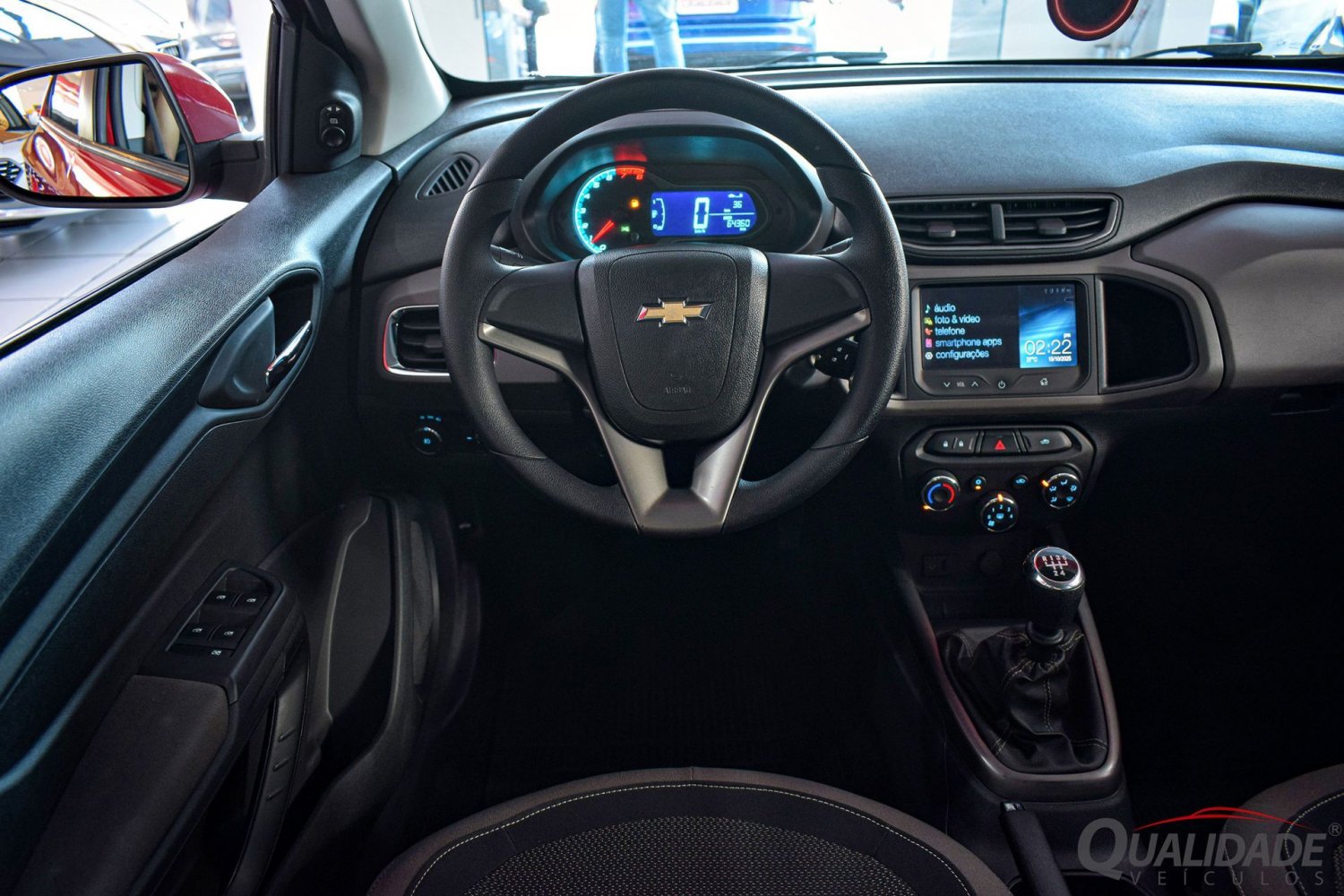 Motor Família 1 1.4L, capaz de gerar até 106cv (A) a 6000rpm e torque de 13,9kgfm (A) a 4800rpm. Aliado a um cambio manual de 5 marchas.