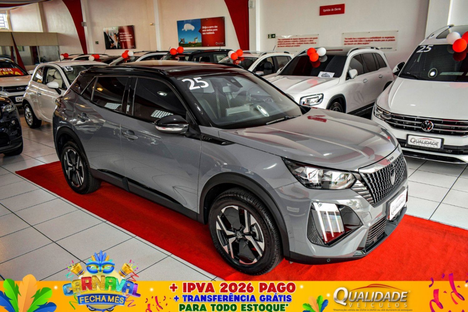 NOVO 2008 GT T200 CVT 2025 na cor Cinza Selenium, de única dona, com apenas 8.657km. Veículo impecável, em raro estado de conservação. Motor T200 1.0L turbo, com corrente de comando e variação de admissão, capaz de gerar até 130cv (A) a 5750rpm e torque de 20,4kgfm (A) a 1750rpm. Aliado a um câmbio automático CVT de 7 velocidades, com conversor de torque integrado e paddle-shifts para trocas de marcha manuais. No versão GT, os opcionais incluem: ar condicionado digital, direção elétrica, trio elétrico, reb. elétrico dos retrovisores, painel digital i-Cockpit 3D, central multimídia, Bluetooth®, USB, Android auto, Apple CarPlay, câmera de ré e 360°, carregador de celular por indução, volante multifuncional, freio de estacionamento eletrônico, sensores crepuscular e de chuva, computador de bordo, monitoramento de pressão dos pneus, indicador de fadiga, alerta de mudança de faixa, alerta de colisão, frenagem de emergência, assistente de farol alto, sistema de reconhecimento de placas, alerta de ponto cego, chave presencial com telecomandos, partida por botão, controles de tração e estabilidade, piloto automático, teto solar panorâmico, faróis em Led, luzes de rodagem diurna, sensores de estacionamento dianteiros e traseiros, rodas de liga leve, Airbags frontais, laterais, de cortina e ABS. HÁ 14 ANOS, A QUALIDADE VEÍCULOS COMERCIALIZA SEMINOVOS DE ALTA QUALIDADE, RIGOROSAMENTE SELECIONADOS E REVISADOS NOS MÍNIMOS DETALHES, PARA TORNAR O SONHO DO CARRO NOVO UMA REALIDADE AGRADÁVEL E INESQUECÍVEL. COM UMA NOTA MÉDIA DE AVALIAÇÃO DE 9,9, NOSSOS PRODUTOS E SERVIÇOS REFLETEM A SATISFAÇÃO DOS MILHARES DE CLIENTES FIDELIZADOS, QUE FAZEM PARTE DA FAMÍLIA QUALIDADE VEÍCULOS. FAZER PARTE DAS SUAS HISTÓRIAS É O QUE NOS MOVE.. Adicionais: Direcao Eletrica, Travas Eletricas, Vidros Eletricos Dianteiros, Vidros Eletricos Traseiros, Retrovisores Eletricos, Desembacador Traseiro, Volante com Regulagem de Altura, Camera de Re, Central Multimidia, Bluetooth, Conexao USB, Entrada Auxiliar, Controle de Tracao, Controle de Estabilidade, Farois de LED, Lanterna de LED, Sensor de Luz, Piloto Automatico, Chave Presencial, Partida por Botao, Retrovisores com Rebatimento Eletrico, Volante Multifuncional, Teto Solar Panoramico, Camera 360, Piloto Automatico Adaptativo, Frenagem Automatica de Emergencia, Detector de Ponto Cego, Carregador Wireless para Celular, Apple CarPlay, Android Auto, Retrovisor Eletrocromico