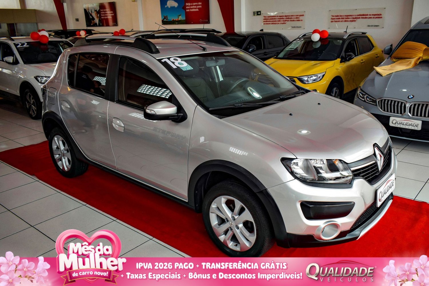 SANDERO STEPWAY DYNAMIQUE 1.6 AT 2018 na cor Prata Etóile, de única dona, com apenas 50.997km. Veículo impecável, em raro estado de conservação. Motor 1.6L, capaz de gerar até 118cv (A) a 5500rpm e torque de 16kgfm (A) a 4000rpm. Aliado a um câmbio automatizado de 5 marchas. No pacote de opcionais estão incluídos: ar condicionado, direção hidráulica, trio elétrico, computador de bordo, central multimídia, Bluetooth®, USB, GPS, câmera de ré, piloto automático, sistema Start/stop, controles de tração e estabilidade, bancos exclusivos da versão, chave telecomandos, faróis de neblina, sensores de estacionamento, rodas de liga leve, Airbags e ABS. HÁ 14 ANOS, A QUALIDADE VEÍCULOS COMERCIALIZA SEMINOVOS DE ALTA QUALIDADE, RIGOROSAMENTE SELECIONADOS E REVISADOS NOS MÍNIMOS DETALHES, PARA TORNAR O SONHO DO CARRO NOVO UMA REALIDADE AGRADÁVEL E INESQUECÍVEL. COM UMA NOTA MÉDIA DE AVALIAÇÃO DE 9,9, NOSSOS PRODUTOS E SERVIÇOS REFLETEM A SATISFAÇÃO DOS MILHARES DE CLIENTES FIDELIZADOS, QUE FAZEM PARTE DA FAMÍLIA QUALIDADE VEÍCULOS. FAZER PARTE DAS SUAS HISTÓRIAS É O QUE NOS MOVE.