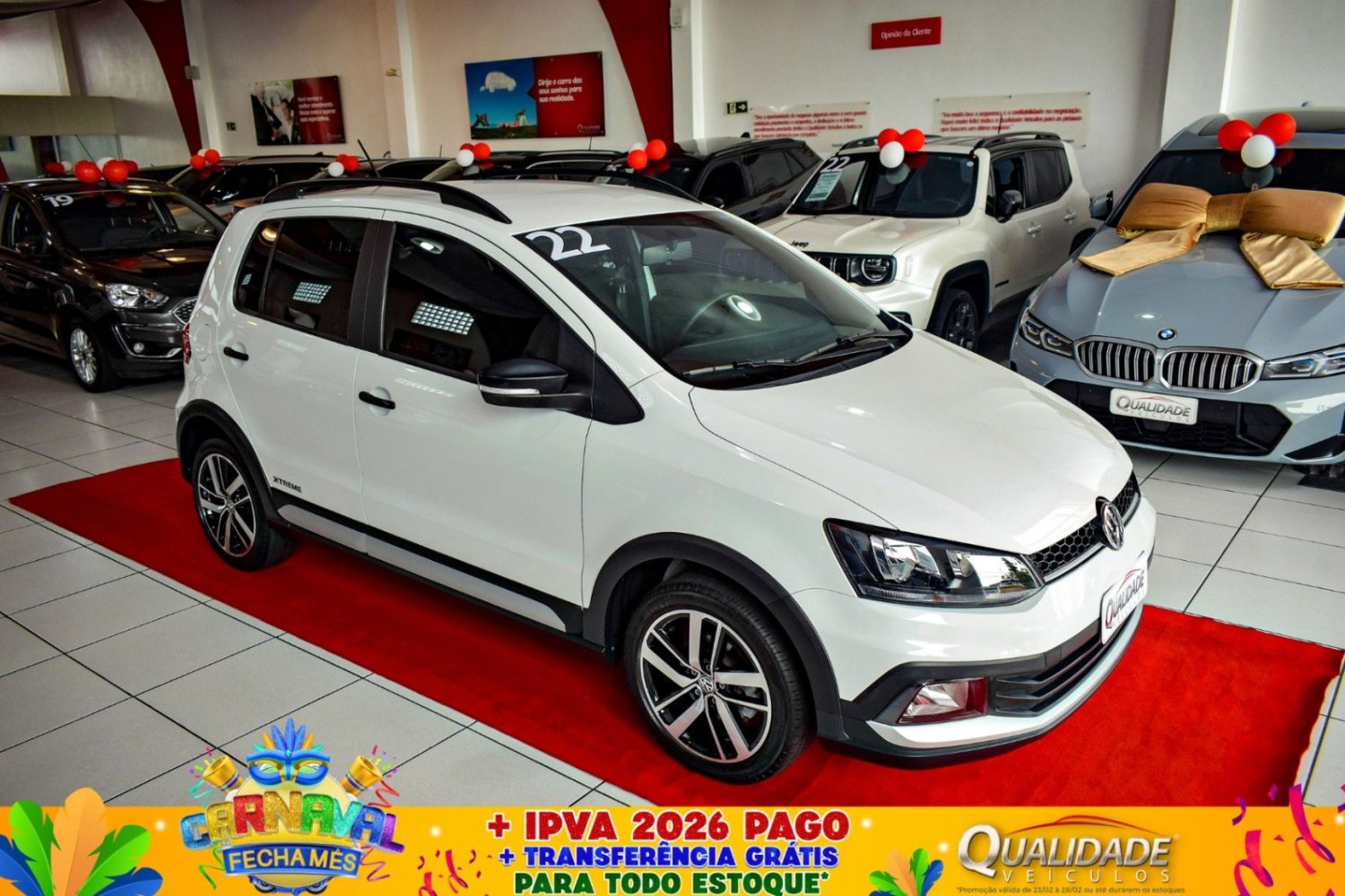 FOX XTREME 1.6 MT 2022 na cor Branco Puro, de única dona, com apenas 38.921km. Veículo impecável, em raro estado de conservação. Motor 1.6L capaz de gerar até 104cv (A) a 5250rpm e torque de 15,6kgfm (A) a 2500rpm. Aliado a um câmbio manual de 5 marchas. No pacote de opcionais estão incluídos: ar condicionado, direção elétrica, trio elétrico, central multimídia, Bluetooth®, USB, Android Auto, Apple CarPlay, câmera de ré, volante multifuncional, computador de bordo, piloto automático, chave com telecomandos, sensores de estacionamento, rodas de liga leve, faróis de neblina, Airbags e ABS. HÁ 14 ANOS, A QUALIDADE VEÍCULOS COMERCIALIZA SEMINOVOS DE ALTA QUALIDADE, RIGOROSAMENTE SELECIONADOS E REVISADOS NOS MÍNIMOS DETALHES, PARA TORNAR O SONHO DO CARRO NOVO UMA REALIDADE AGRADÁVEL E INESQUECÍVEL. COM UMA NOTA MÉDIA DE AVALIAÇÃO DE 9,9, NOSSOS PRODUTOS E SERVIÇOS REFLETEM A SATISFAÇÃO DOS MILHARES DE CLIENTES FIDELIZADOS, QUE FAZEM PARTE DA FAMÍLIA QUALIDADE VEÍCULOS. FAZER PARTE DAS SUAS HISTÓRIAS É O QUE NOS MOVE.. Adicionais: Direcao Eletrica, Travas Eletricas, Vidros Eletricos Dianteiros, Vidros Eletricos Traseiros, Retrovisores Eletricos, Desembacador Traseiro, Camera de Re, Central Multimidia, Bluetooth, Conexao USB, Farois de Neblina, Piloto Automatico, Volante Multifuncional, Apple CarPlay, Android Auto