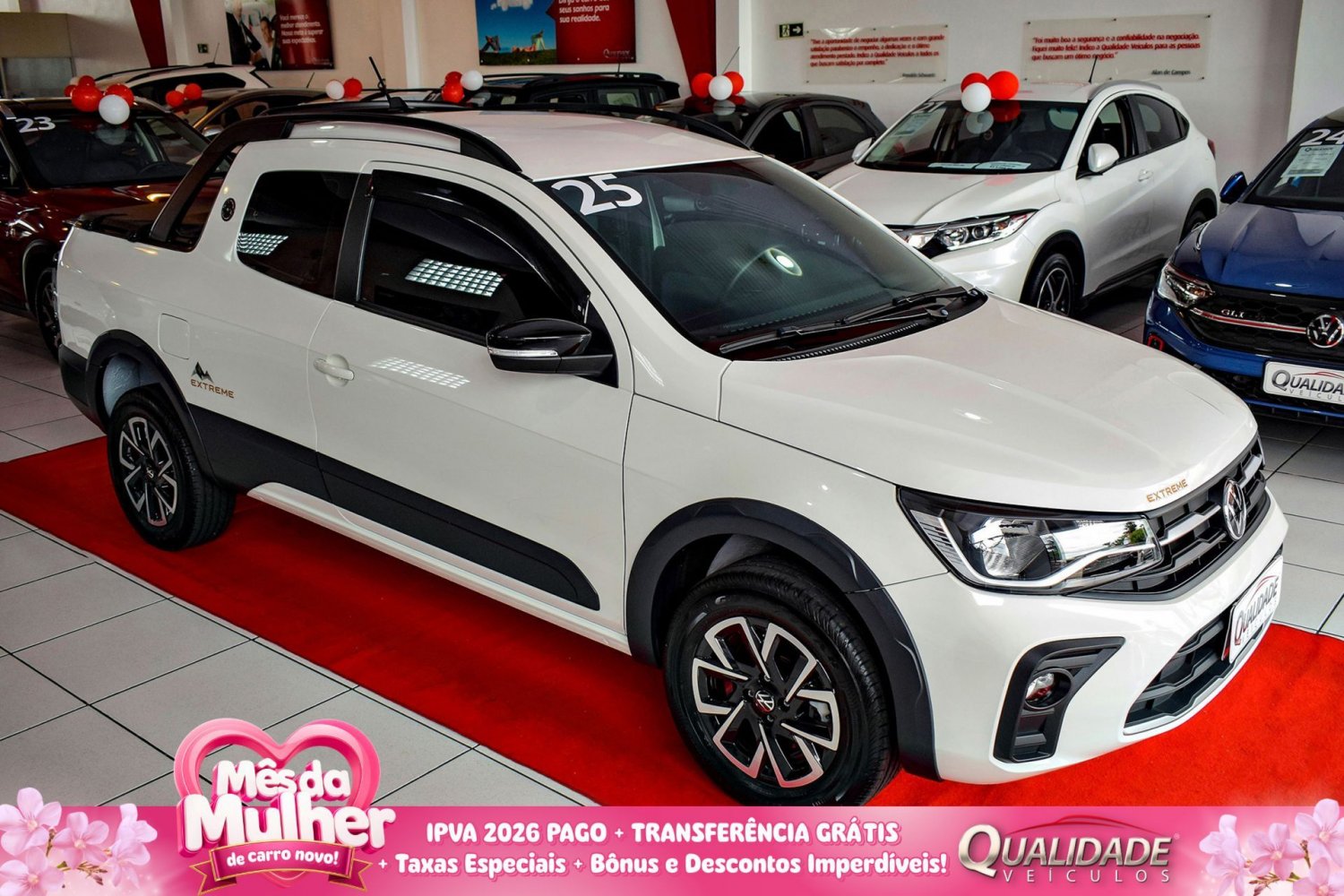 SAVEIRO EXTREME CD 1.6 MT 2025 na cor Branco Cristal, de único dono, com apenas 17.041km. Veículo impecável, em raro estado de conservação.